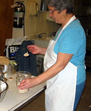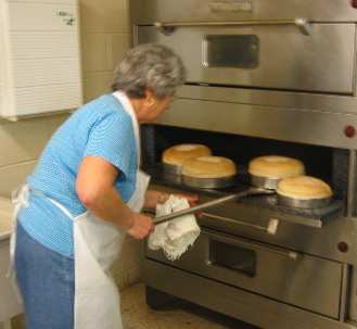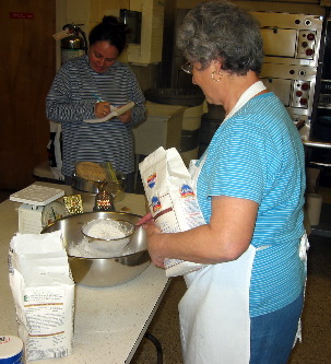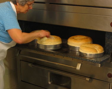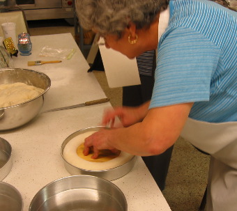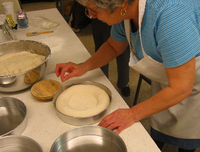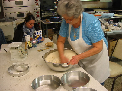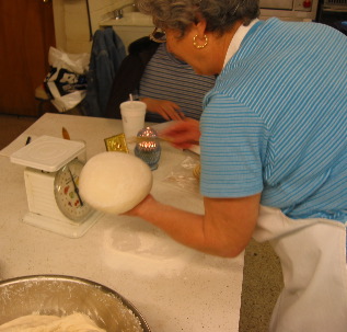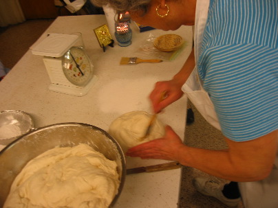 Flour area on table. Knead/punch bread dough, pushing out air bubbles. Repeat the Bread Prayer as you knead.