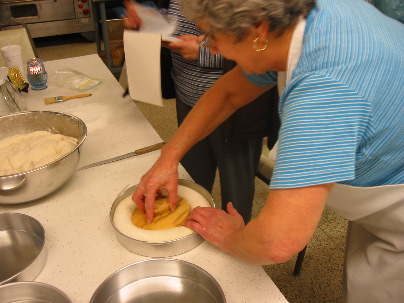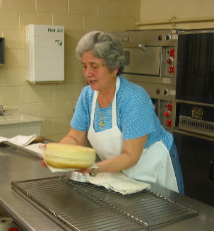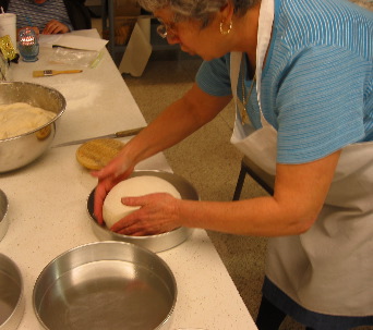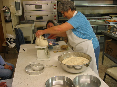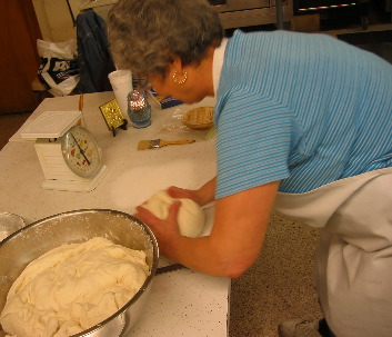 Flour area on table. Knead/punch bread dough, pushing out air bubbles. Repeat the Bread Prayer as you knead.